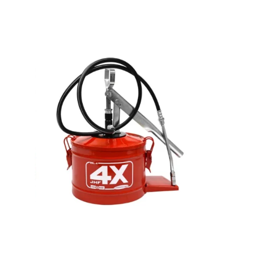 Bomba de Graxa 4kg -JHF-8487 da HYDRONLUBZ é ideal para graxa comum exceto graxa de rolamento com reservatório e com Bico eletrostática a pó externo e interno borrifador; Cabeçote em aço. Mangueira com 1,30 metros para alta pressão, com opcional mangueira de 3 metros e bico acoplador hidráulico de 4 garras.