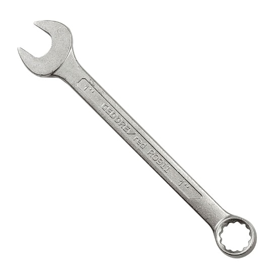 A Chave Combinada 1" é uma ferramenta profissional indicada para operações de aperto e afrouxamento de porcas e parafusos sextavados em aplicações de grande porte, onde é exigido alto torque e robustez. Seu formato combina uma extremidade fixa tipo boca e outra estriada tipo estrela, proporcionando versatilidade e segurança durante o uso em diferentes condições de trabalho.