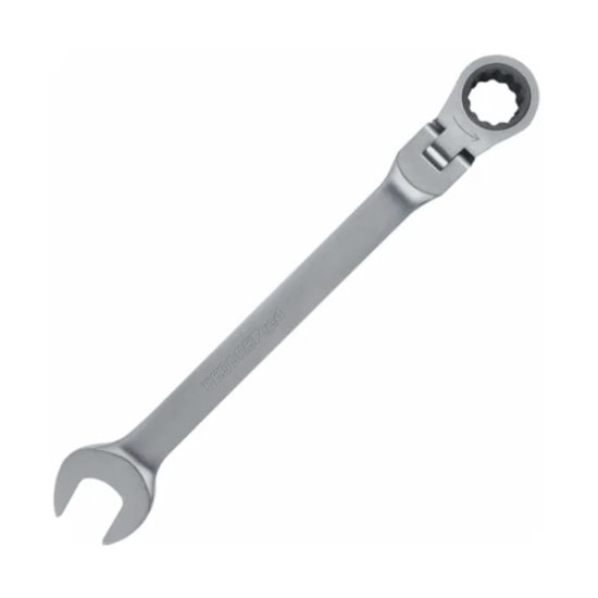 A Chave Combinada Articulada com Catraca 8 mm é uma ferramenta profissional desenvolvida para operações de aperto e afrouxamento de porcas e parafusos sextavados de pequeno diâmetro, oferecendo rapidez, precisão e conforto em aplicações que exigem agilidade. Seu design combina uma extremidade fixa tipo boca com outra estriada equipada com mecanismo de catraca e cabeça articulada, permitindo trabalho contínuo sem a necessidade de retirar a chave do fixador, mesmo em espaços reduzidos.