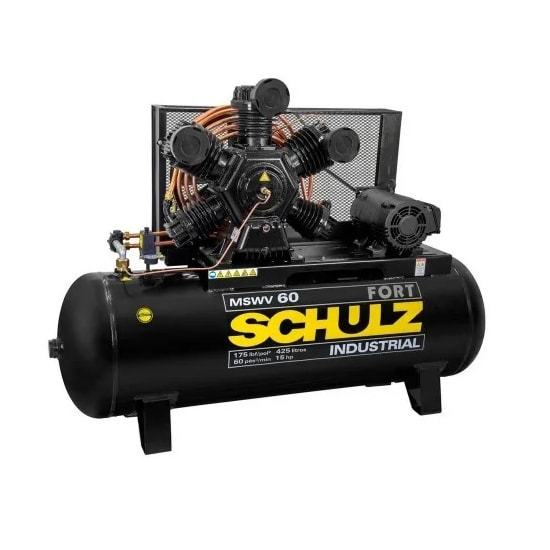 Uso profissional, excelente para indústrias, o Compressor de ar alta pressão 60 pés 425 litros trifásico – MSWV 60/425 faz parte da linha Fort da Schulz.