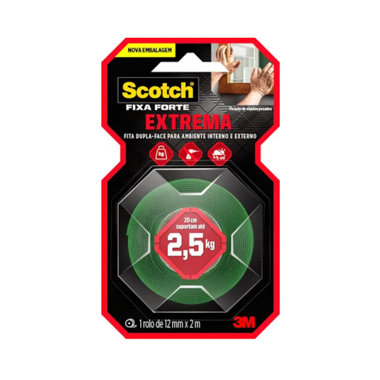Com 24 mm de largura e 2 metros de comprimento, é ideal para instalação de quadros, espelhos leves, canaletas, suportes plásticos, acessórios de decoração e pequenos organizadores. Sua espuma compressível ajuda a compensar pequenas irregularidades, aumentando a área de contato e assegurando maior firmeza.