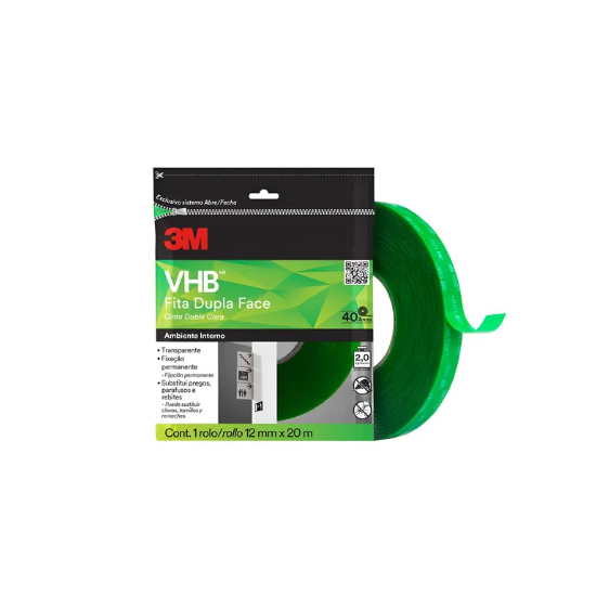 A Fita Dupla Face 4910 12mm x 20m - 3M-H0002317883 faz parte da linha 3M VHB (Very High Bond), reconhecida mundialmente pela sua altíssima performance em fixações permanentes. Desenvolvida em acrílico transparente, oferece aderência excepcional em superfícies lisas e irregulares, substituindo rebites, parafusos e soldas em diversas aplicações industriais e comerciais.