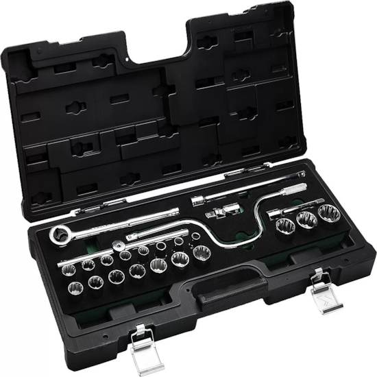 - Acessórios: Catraca, Manivela, Cabo T, Extensão 5”, Extensão 10”, Junta Universal (Maleta Termoplástica)
