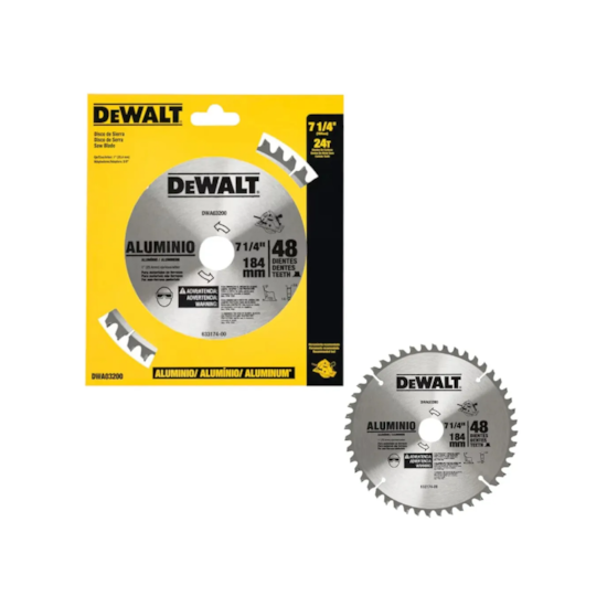 A Lâmina para Serra Circular 7-1/4" (184mm) com 48 Dentes DEWALT DWA03200 é projetada para oferecer cortes precisos e suaves em materiais não ferrosos, especialmente alumínio. Com dentes de wídea e corpo de aço temperado, esta lâmina garante durabilidade e desempenho superior em aplicações profissionais e domésticas.