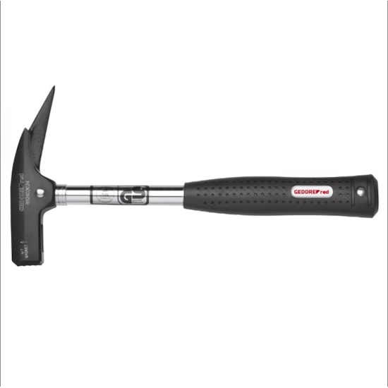 A cabeça é forjada em aço especial GEDORE red, proporcionando alta resistência mecânica e longa vida útil. Possui acabamento pintado em preto, com cantos arredondados, aumentando a segurança durante o manuseio e reduzindo o risco de lascamentos. A unha traseira permite remoção eficiente de pregos, tornando o martelo ainda mais versátil no canteiro de obras.