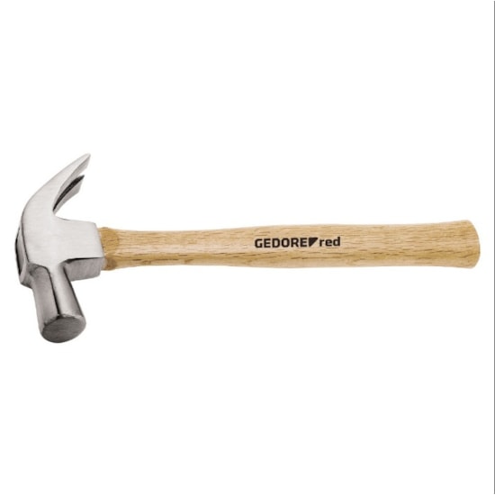 A cabeça é forjada em aço especial GEDORE red, garantindo elevada resistência mecânica e longa vida útil. Possui cantos arredondados, aumentando a segurança durante o manuseio e reduzindo o risco de lascamentos. A unha traseira permite a extração eficiente de pregos, com menor esforço do operador.