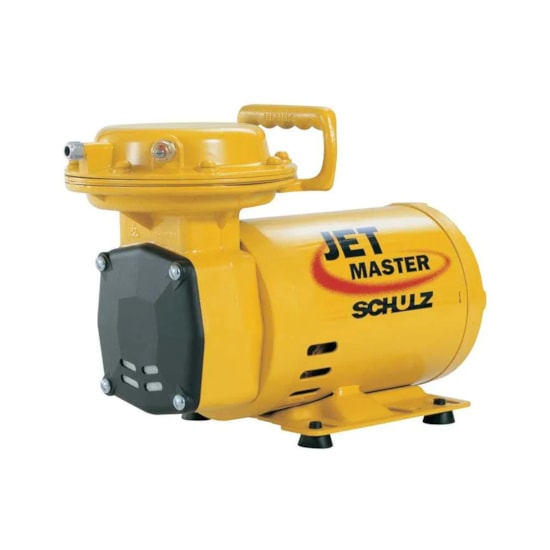 O Compressor de ar direto Schulz Jet Master possui potência de 1/3 hp, alça para um melhor transporte, pés em borracha para uma melhor fixação.