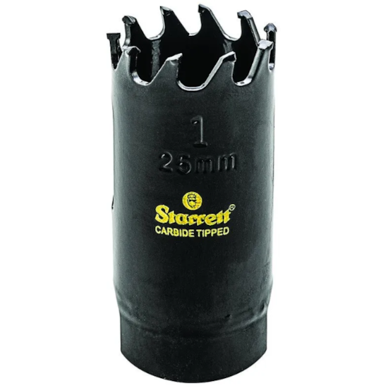 A serra copo ponta de metal duro CT Starrett® de 25 mm e 1 polegada possui alta performance com ponta de carboneto de tungstênio e oferece uma solução de custo efetivo para cortar madeira embutida com pregos, ou praticamente qualquer combinação de madeira e metal, concreto reforçado e fibra de vidro.