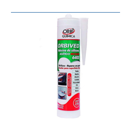 É um adesivo de silicone multiuso flexível de cura acética, ideal para reparar uma grande variedade de materiais como: vidro, metais, madeira, alumínio, policarbonatos e outros.